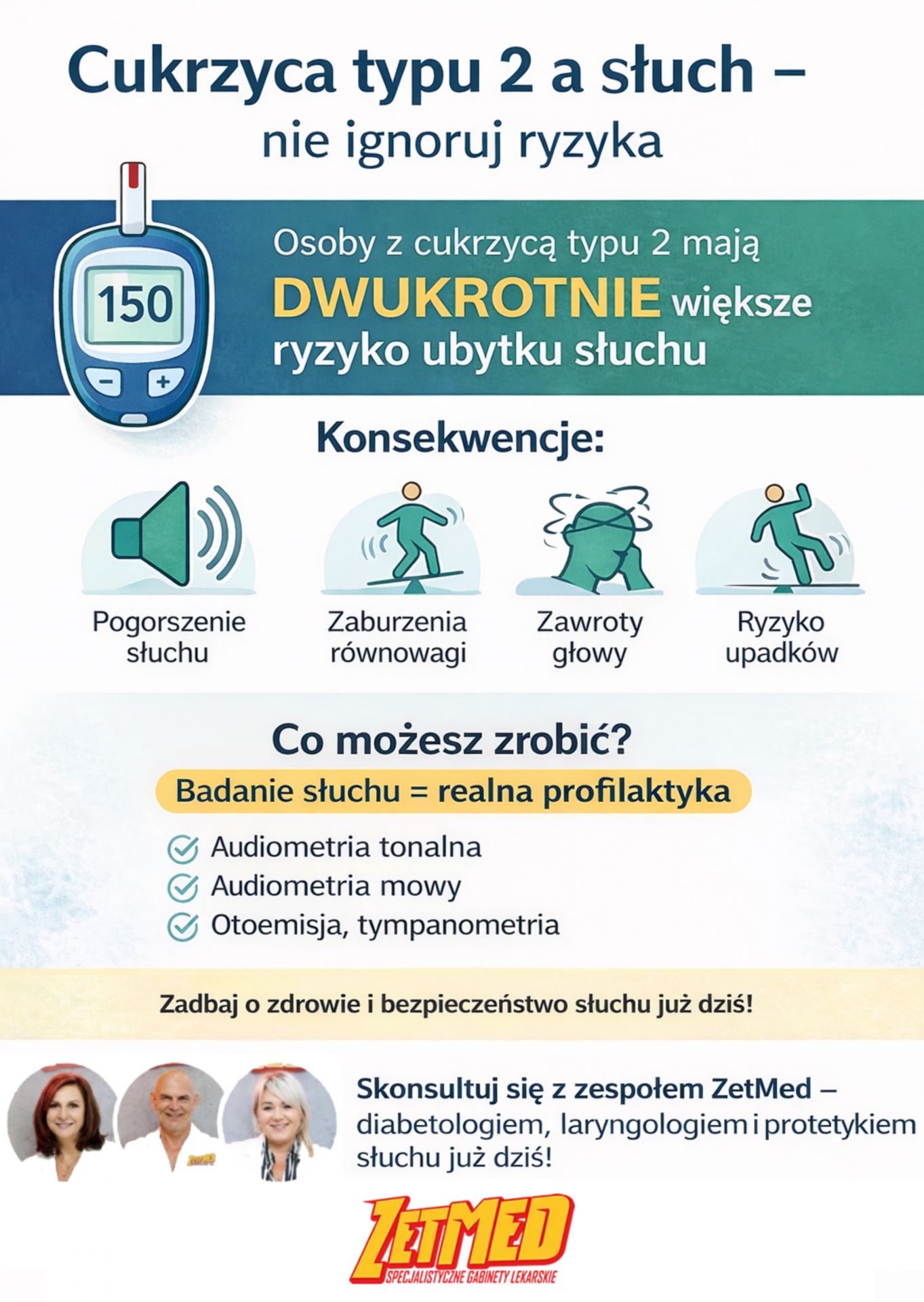 Skonsultuj się z zespołem ZetMed – diabetologiem, laryngologiem i protetykiem słuchu.